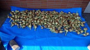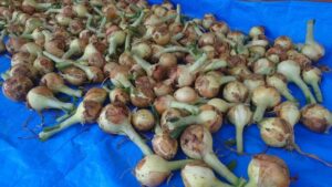 いちょうの里の家庭菜園で玉ねぎを収穫しました。