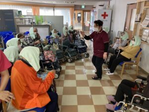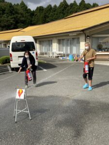 当日は、利用者の避難状況等を確認するとともに、消防訓練実施後は職員への消火器操作も併せて実施しました。