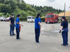 確認するとともに、消防訓練実施後は職員への消火器操作についてもご指導い