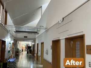 先に社会福祉法人丸紅基金の『2025年度社会福祉助成事業』に採択をいただいた特別養護老人ホームの建物内部の老朽化(廊下壁の大きな亀裂・ホール支柱のヒビ割れ・複数箇所の壁紙が剥落)の補修工事については、令和8年1月8日に着工し、2月4日をもって完了しました。